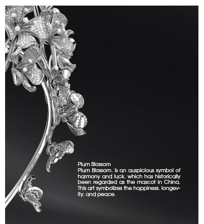 Plum Blossom, is an auspicious symbol of harmony and luck, which has historically been regarded as the mascot in China. This art symbolizes the happiness, longevity, and peace.