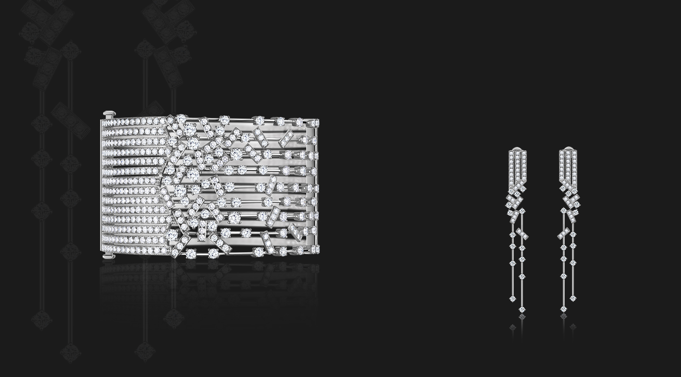 The Beginning of Winter is a time when the world has been shrouded in silver, and the chill of the early winter brings a piercing force to the rain. This set is inspired by the rainy season of early winter and the unique natural landscape that it creates. In this piece, diamonds fall like wintry raindrops on branches and rocks, forming a thin, smooth, glistening sheen. The frost builds into milky icicles which are at once crystal-clear and yet rich in color. The viewer cannot help but sigh at the mysteries of the season and the wonder of nature.