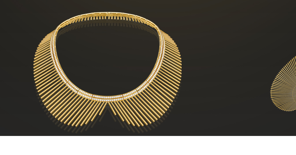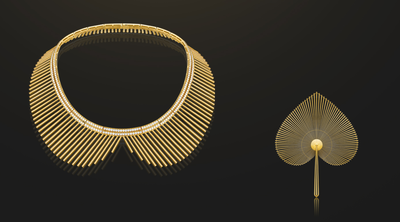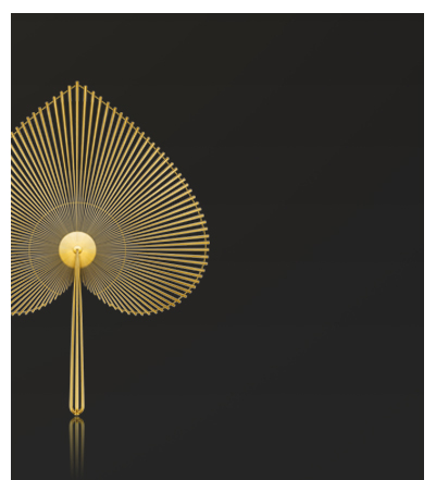 The designer based this set around the twin shapes of the heart and the palm-leaf fan to express the Buddhist concept of experiencing “three thousand realms in a single moment of life”, and honoring the infinite potential and desire for inner and outer peace and harmony in every individual. Each piece is studded with diamonds to provide the heart-shaped surface with the texture of a fan. Each of these tiny studs symbolizes a moment of life, dozens of which adorn each heart, the symbol of a person’s inner spiritual world. This expresses a peaceful state of mind that embraces the connections between all persons and things in the natural world, and is rich in Zen Buddhist symbolism.