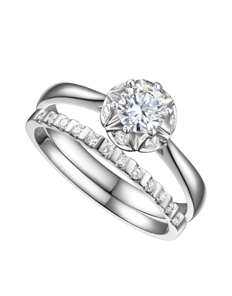 設(shè)計(jì)靈感汲取自待放的玫瑰,如不斷成長的愛情,永不凋零。“V”形組合將愛的傳奇旅程蘊(yùn)涵其中,寓意愛的守護(hù)。菱形鑲口與戒臂的一體化設(shè)計(jì),最完美地展現(xiàn)鉆石光彩,無論從哪個角度都能看到完美的鉆石,猶如有愛陪伴的旅程,每一時,每一刻,每一面都很美。