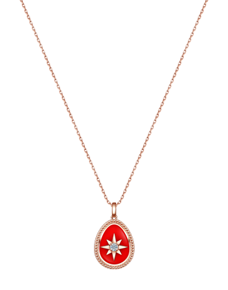 The design is enclosed in an egg shape, a symbol of fertility, life and hope, as well as a partial homonym for “Christmas” in Chinese. The pendants come in a thick and brilliant red, a piercing evergreen, and a mystical crystalline blue. Its compact presentation contains a dazzling five-in-one chromatic array, opening a pathway to a colorful world of dreams.