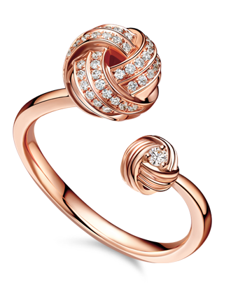 This series provides you with a marvelous connection to your unique memories. Its visual inspirations come from colorful candies and yarn balls—everyday objects which serve as a symbol of joy, with fantastic and soft round shapes molded from metal. 18-karat gold serves as a perfect match for the diamonds of this set, which is bright and dazzling. Although it is seemingly casual, it reveals the wearer’s approach to fashion and unique taste.