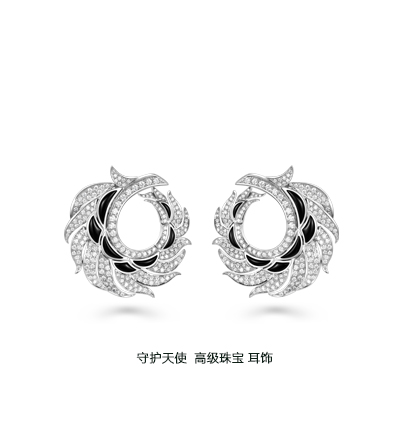 以東方白鸛的羽毛為設(shè)計(jì)靈感,黑瑪瑙和鉆石巧妙組合,呈現(xiàn)羽毛亮麗光澤,微鑲鉆石表現(xiàn)羽毛的豎向紋理,巧妙地突顯了作品設(shè)計(jì)的輕盈感,整件作品煥發(fā)著自然生命力,將羽翼的無限風(fēng)華化為最溫柔的守護(hù)。