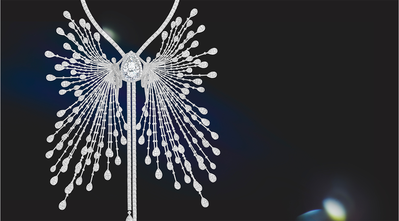 時光之眼,致敬時間的力量。浩瀚的宇宙時空,承載了由古至今無數(shù)瑰麗奔放的幻想,正如梁祝的愛情絕唱,歷經(jīng)時光的淬煉,日久彌新。當(dāng)誕生于神秘非洲大陸的梨形珍鉆邂逅古老的東方文明,賦予作品極致生命力。
