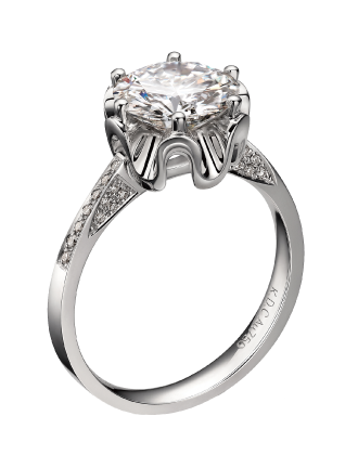 偉大的設計師擅長運用簡潔的線條和造型,卻在細節(jié)處取勝。此款戒指就將六角形的蜂巢結(jié)構(gòu)巧妙運用到鑲口設計中,讓我們在驚嘆大自然鬼斧神工的同時,營造出產(chǎn)品強烈的建筑感和空間感。兩排小鉆燦然列隊,華美主鉆穩(wěn)坐蜂巢之上,儼然一副王者風范。